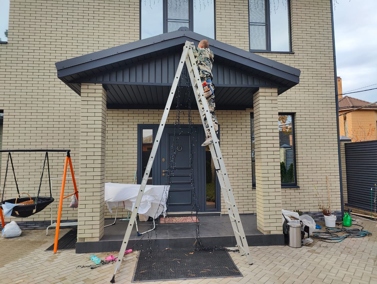 Для освещения фасадов домов мы используем исключительно высококачественные гирлянды с уровнем защиты IP65, что гарантирует их влагостойкость и надежную работу даже при сильных перепадах температур.